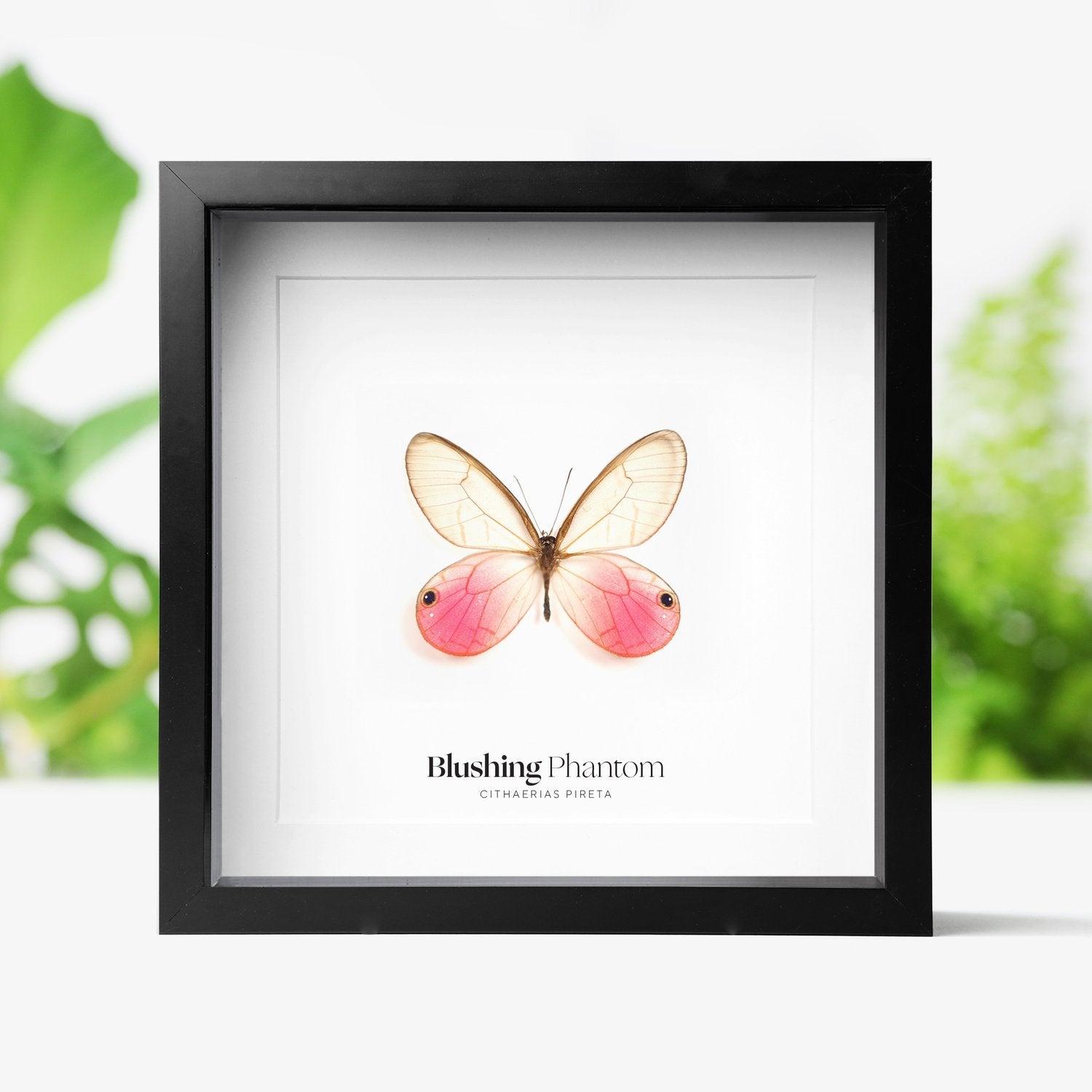This Blushing Phantom (Cithaerias pireta) has been hand set by our expert entomologists in our studio and elegantly mounted in a museum quality deep box frame.