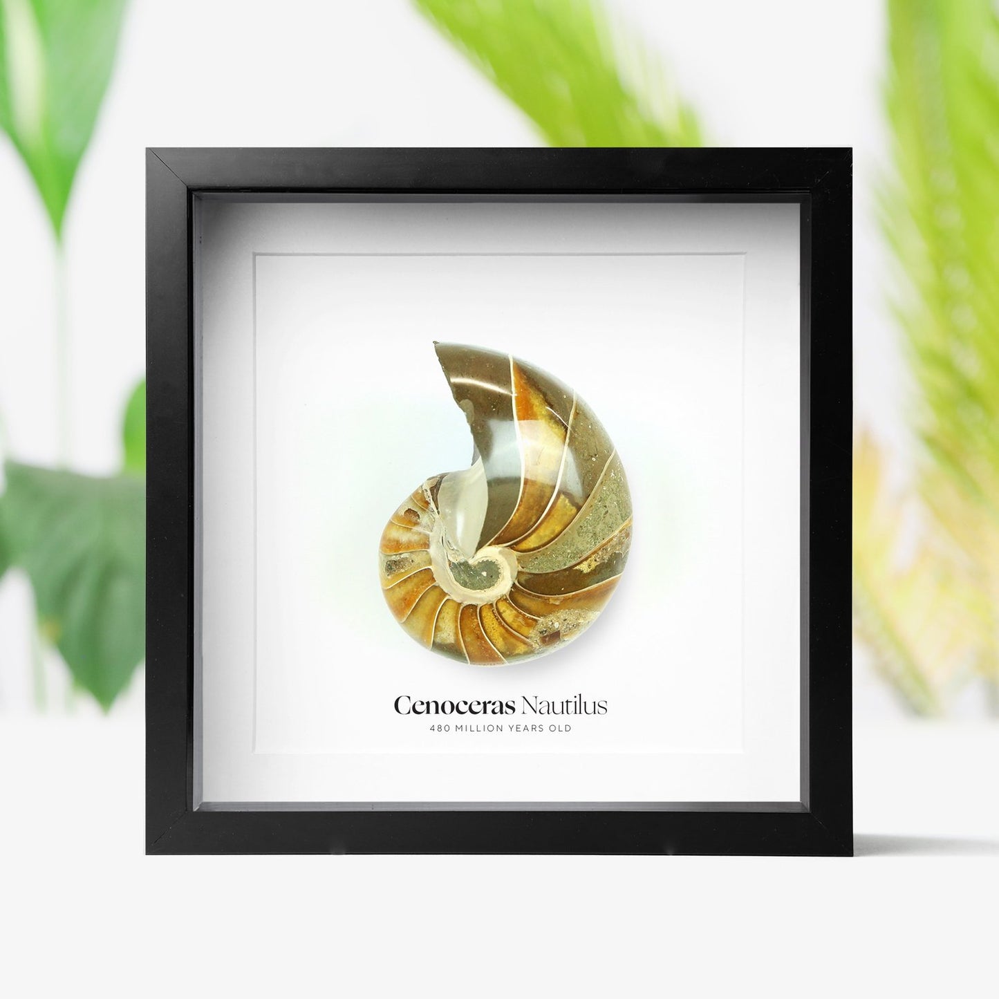 This Cenoceras Nautilus (480 million years old) has been displayed and elegantly mounted in a museum quality deep box frame by our expert in house team.