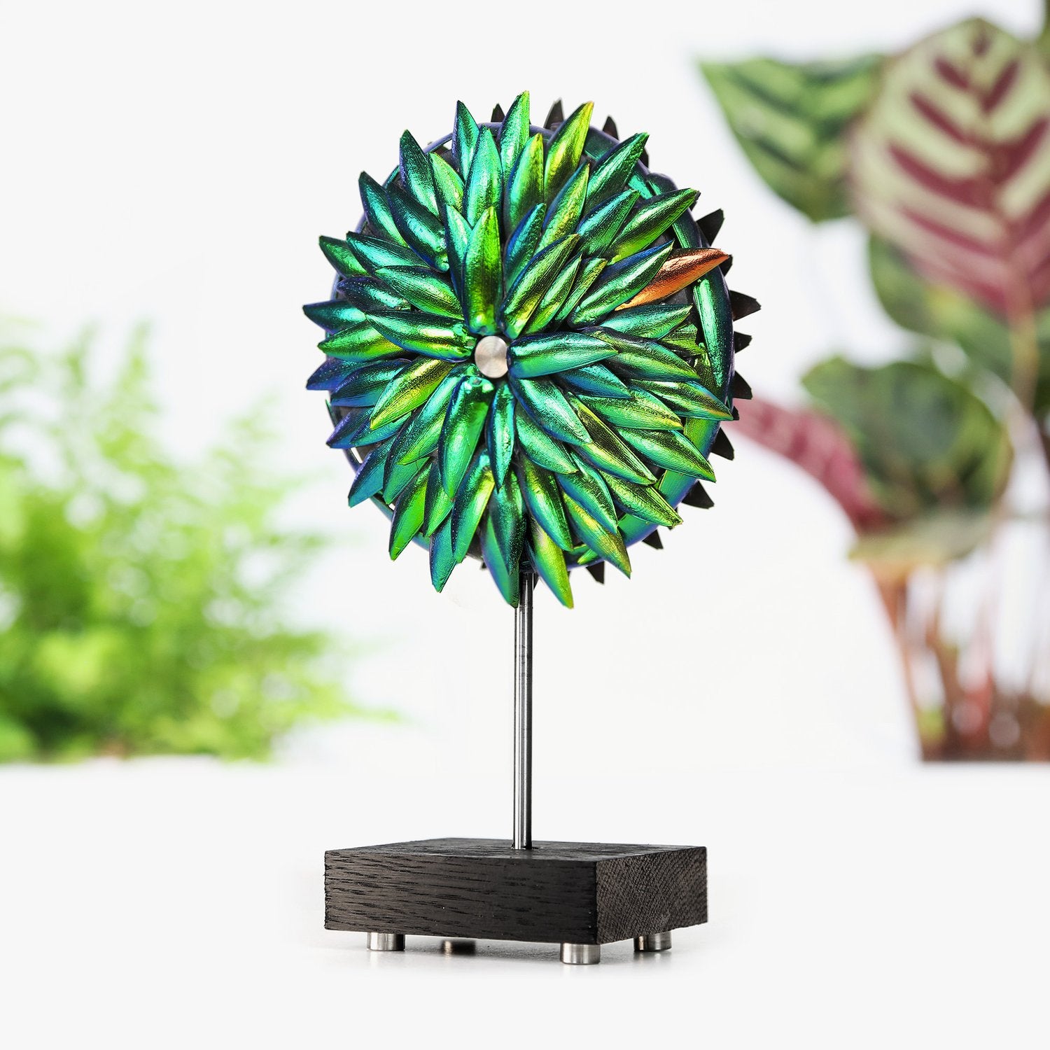 This Elytra Beetle Wing Mosaic has been hand set by our expert entomologists in our studio and elegantly mounted on a bespoke solid oak stand.