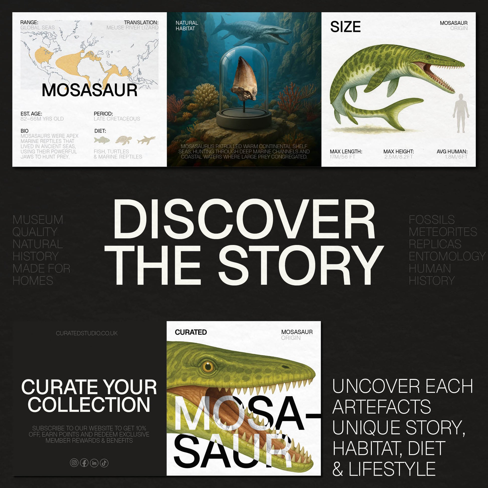 Recovered from phosphate beds in North Africa, each element has been carefully cleaned, stabilised, and arranged to preserve both structure and scientific context, a representation of one of the most effective marine predators of its time.