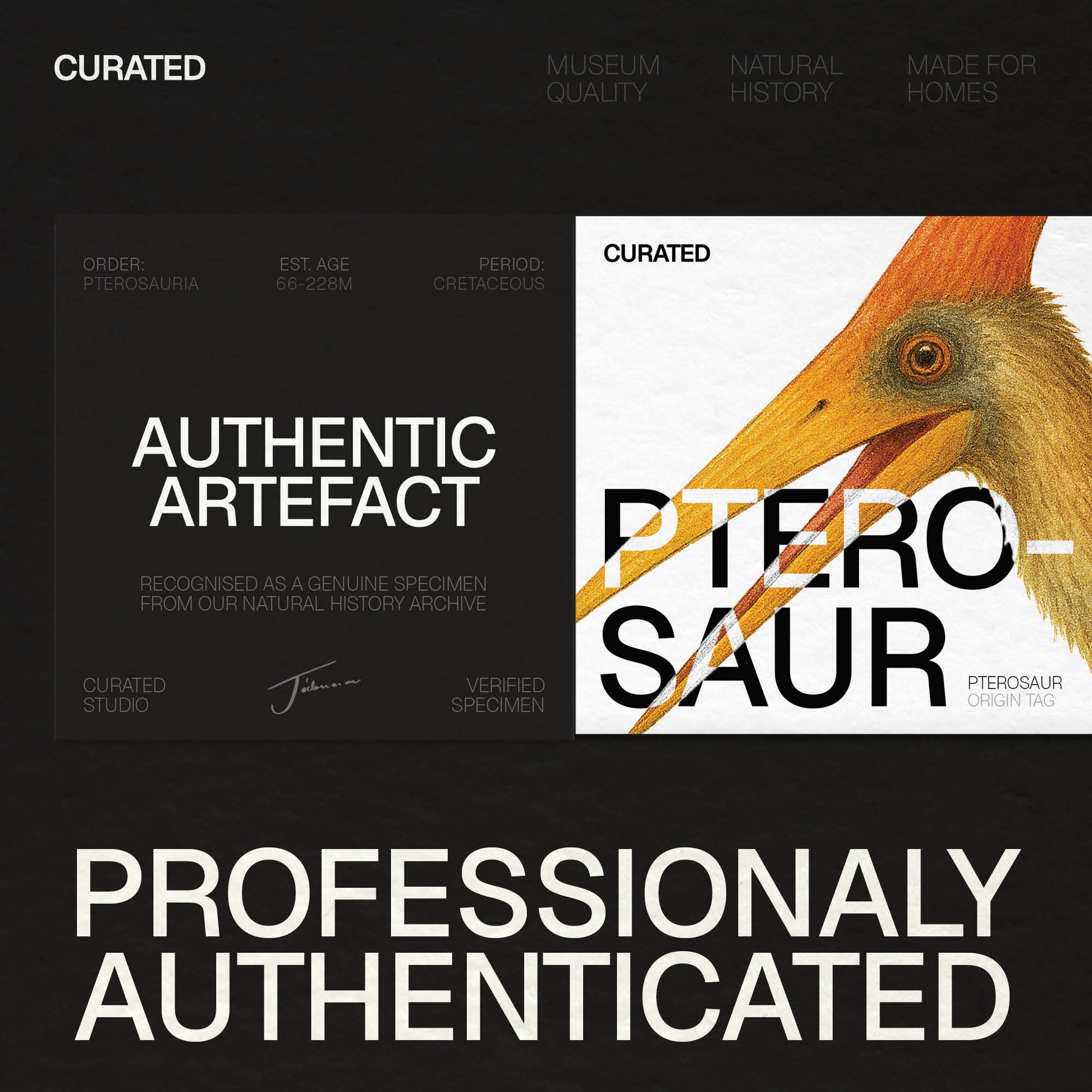This Pterosaur Tooth (165 Million Years Old) has been displayed and elegantly mounted in a museum quality deep box frame, by our expert in-house team and is accompanied by a detailed sketch of this species.
