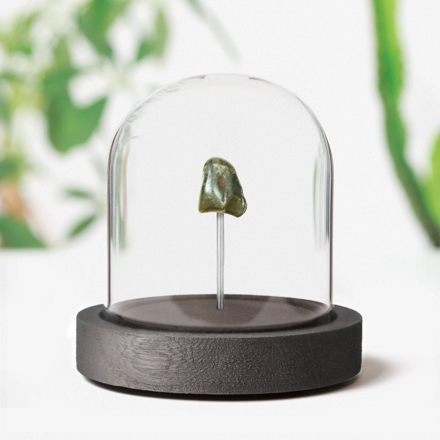 This Sikhote-Alin meteorite has been displayed in a museum quality glass dome bell jar. The iron meteorite fell to Siberia in 1947 and was formed approximately 4.5 billion years ago.