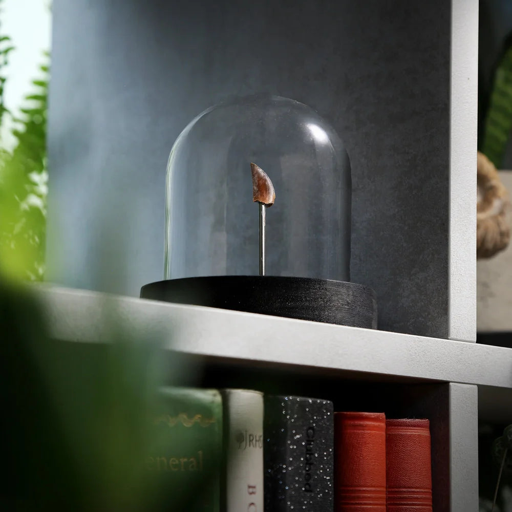This Velociraptor Tooth (75 Million Years Old) has been displayed and elegantly mounted in a museum quality glass dome bell jar.
