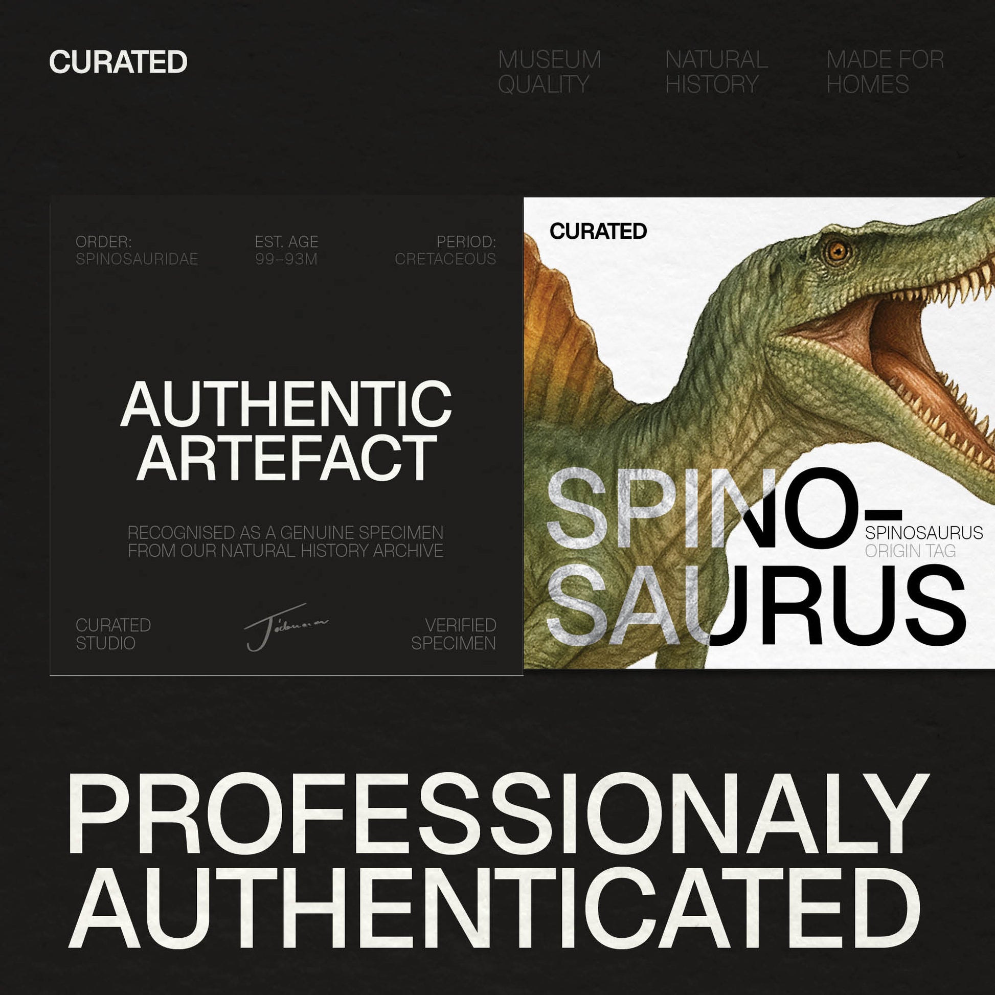 This Large Spinosaurus Tooth (110 Million Years Old) has been displayed and elegantly mounted in a museum quality deep box frame, by our expert in house team.